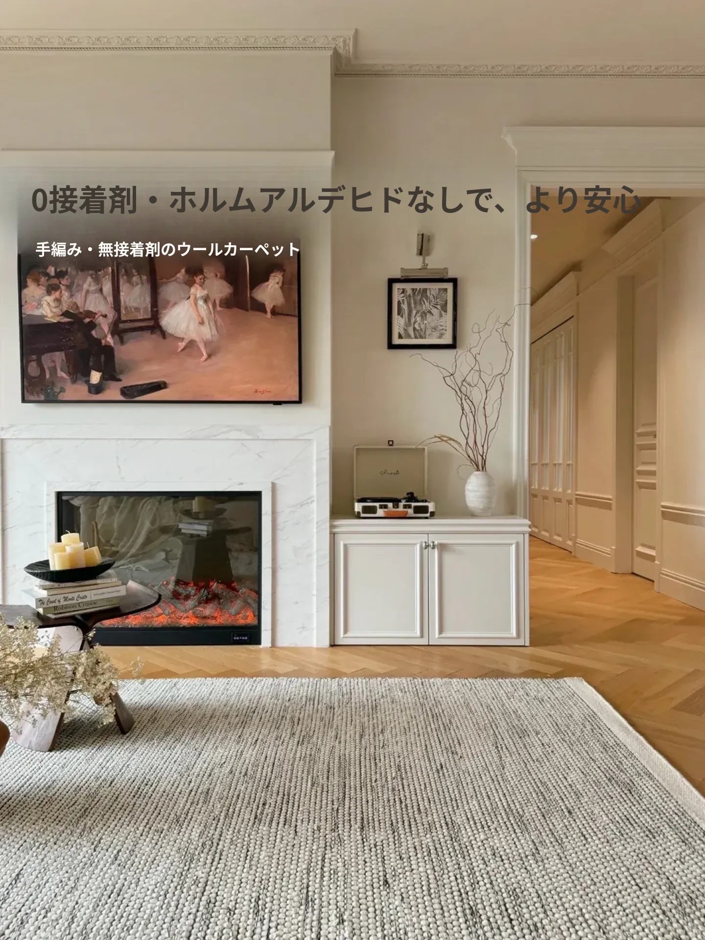 無接着剤両面使用可能なカーペット|インド直輸入の高級ウールカーペット フレンチスタイルのシンプルで洗練されたリビング空間にぴったり!