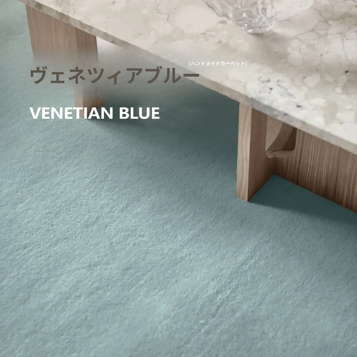 レトロブルーのカーペット|ミニマルなフレンチウール素材|客間や寝室にぴったりの高級感あふれるデザイン|オシャレな民宿のインテリアに最適!